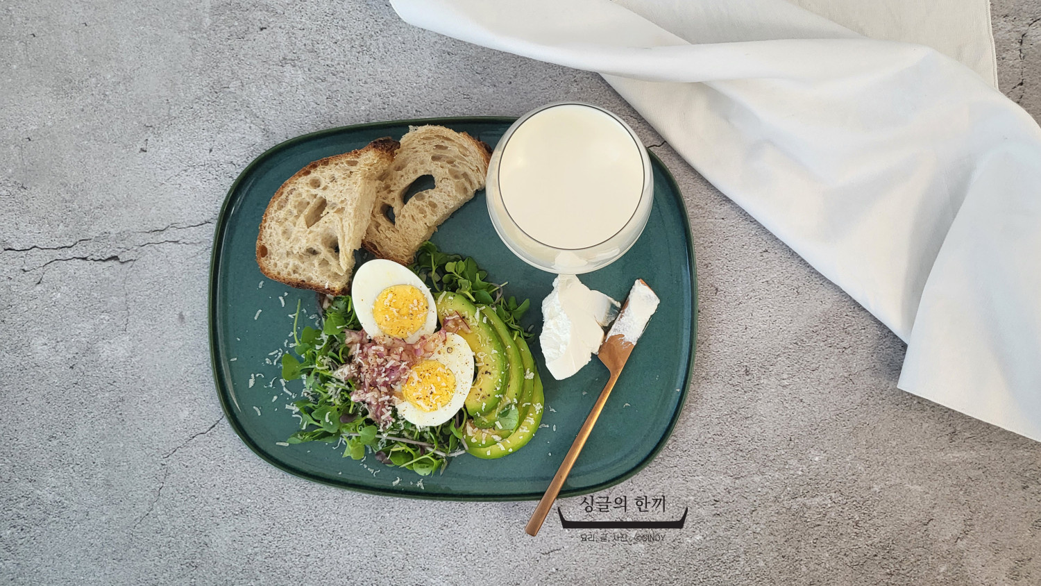 Finalmente, sirve con un acompañamiento de leche tibia y una cucharada de yogur griego cremoso para completar tu exquisito set de brunch de aguacate. ¡Disfruta de este delicioso brunch estilo cafetería en la comodidad de tu hogar!