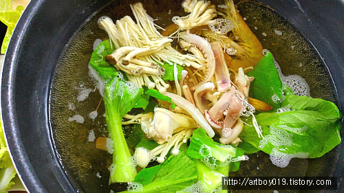 Una vez que el caldo hierva a borbotones, añade los mariscos, las verduras y los hongos preparados. Es mejor añadirlos en etapas, considerando sus tiempos de cocción, para asegurar que todo quede perfectamente cocido.