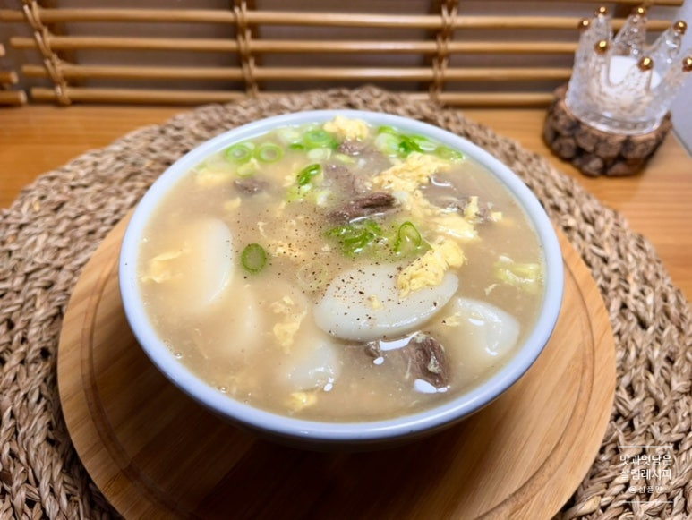 Presentamos una receta simple pero profundamente sabrosa de Tteokguk de carne de res, hecha con un rico caldo de anchoas y algas. Perfecta para un día frío, esta reconfortante sopa es una comida completa en sí misma, eliminando la necesidad de un plato de acompañamiento aparte. Los pasteles de arroz (tteok) masticables combinados con tierna carne de res salteada crean una textura deliciosa y una profundidad de sabor, que requiere un mínimo de condimento para brillar. Si no tienes caldo casero, usar dos cubos de caldo comercial en agua es un excelente atajo para lograr una base de sopa deliciosa. Esta sopa clara es un acompañamiento ideal para el kimchi, especialmente durante la temporada de preparación del kimchi, ¡convirtiéndola en un verdadero ‘ladrón de kimchi’! Para una preparación más sencilla, puedes batir los huevos directamente en la sopa caliente para obtener una textura sedosa, en lugar de hacer una guarnición de huevo. Los huevos están repletos de nutrientes, así que siéntete libre de agregarlos generosamente. Este nutritivo y satisfactorio Tteokguk de carne de res, con sus pasteles de arroz masticables y abundante carne de res, es una excelente opción para los niños en crecimiento y una reconfortante comida de invierno. Comencemos a preparar esta deliciosa sopa paso a paso.