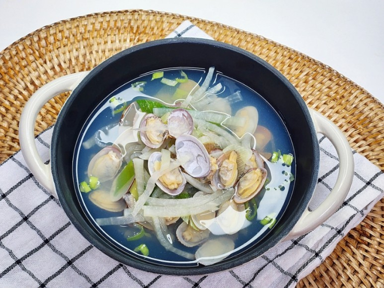 ¡Y aquí lo tienes: un Bajirak-tang perfectamente claro y refrescante! Disfruta de esta sabrosa sopa de almejas, que es excelente como una comida satisfactoria o una cura revitalizante para la resaca. Podrás saborear el fresco sabor del mar en tu propia casa.