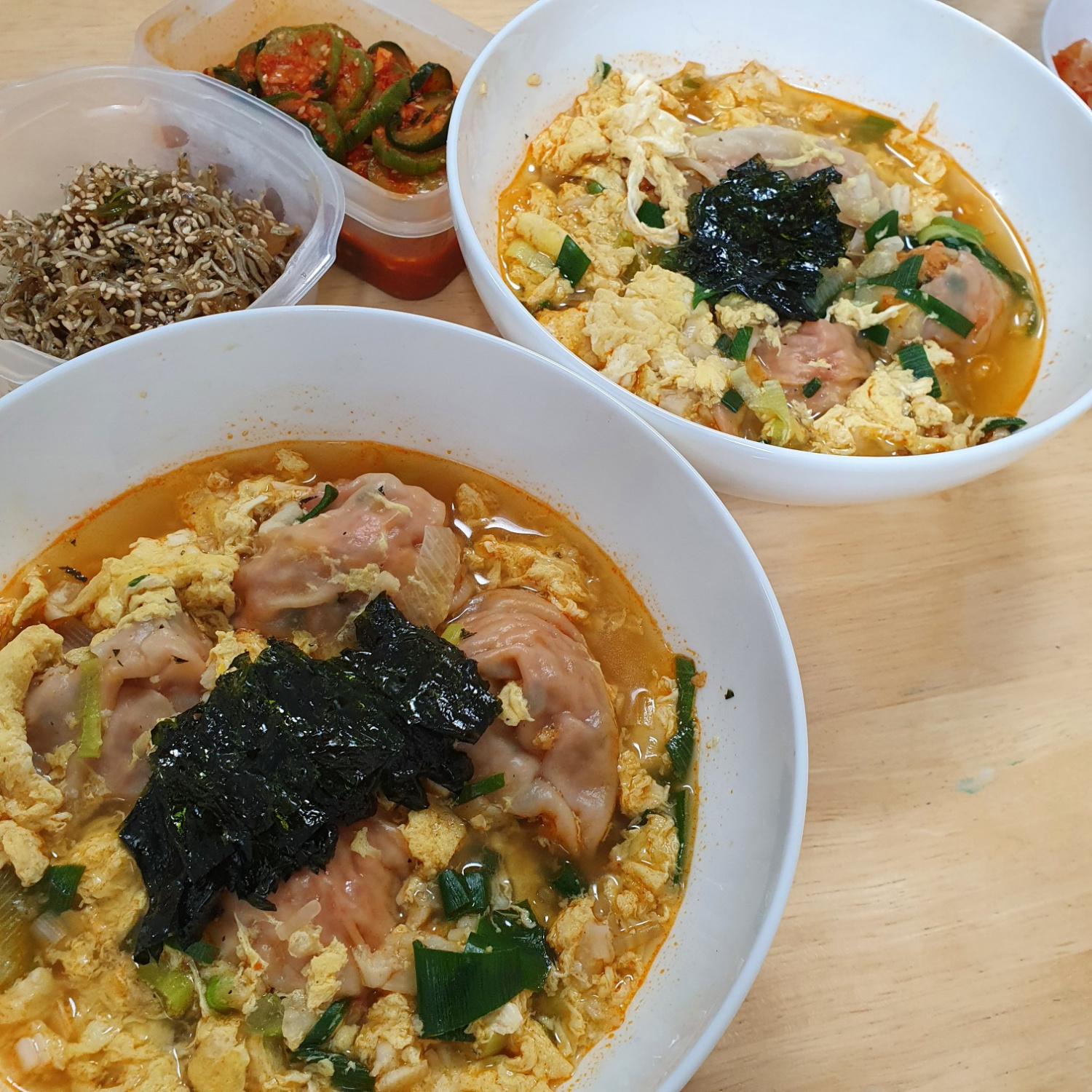 Para un toque extra, puede añadir algas secas desmenuzadas (gim). ¡Su deliciosa Sopa de Dumplings de Kimchi ahora está completa! Disfrútela bien caliente.