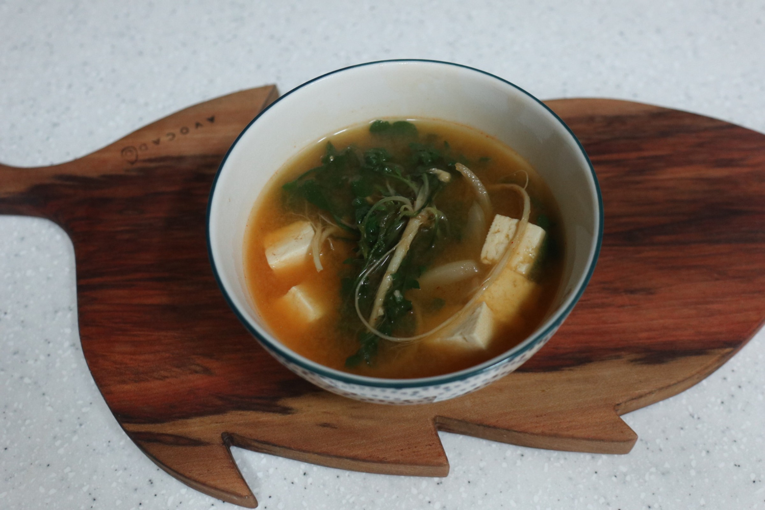 Sopa de Pasta de Soja con Hierbas de Primavera (Naengi Doenjang Guk)