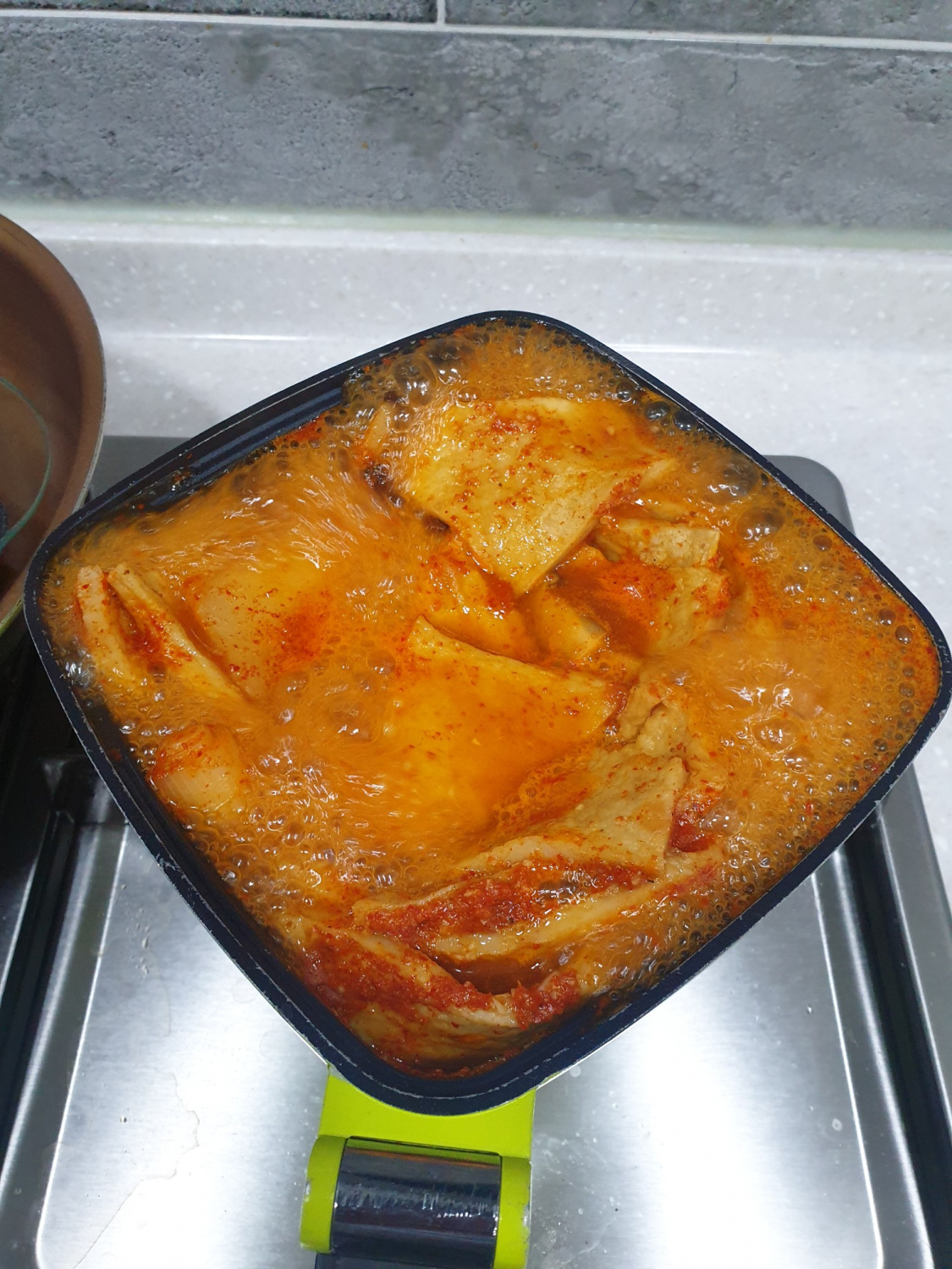 La versión hecha con gochujang y gochugaru será ahora una deliciosa y atractiva sopa de pastel de pescado picante. Para un impulso adicional de umami, agregue 1/2 cucharada de extracto de atún, si lo desea.