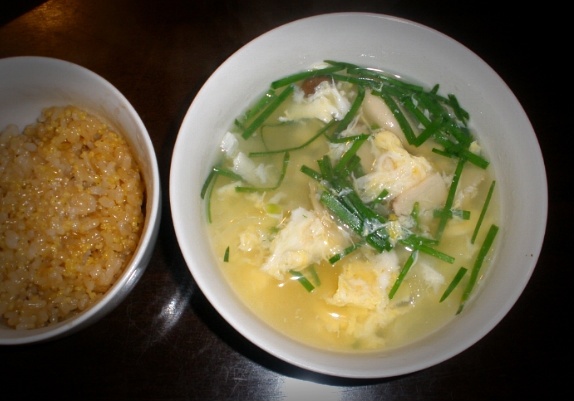 Sopa Vibrante de Huevo con Champiñones y Cebollino Fresco Picado (Sopa de Huevo con Champiñones y Tofu)