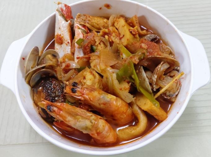 ¡Tu sopa picante de pastel de pescado con mariscos está lista! Disfruta del sabor refrescante de los mariscos frescos y del caldo picante y satisfactorio. Es deliciosa servida con arroz o como un acompañamiento perfecto para un vaso de soju.