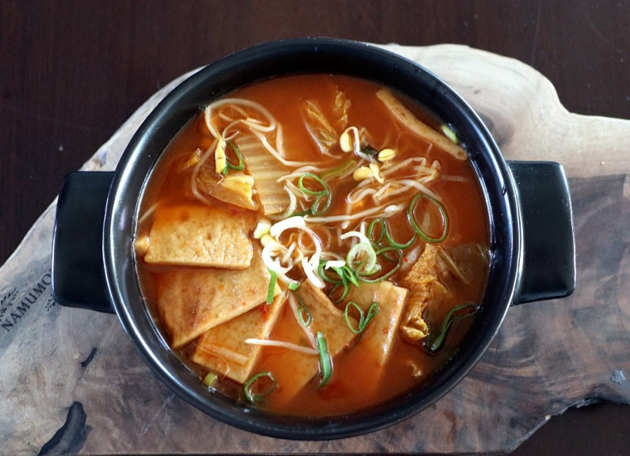 Presentamos la Sopa de Kimchi, Pastel de Pescado y Brotes de Soja: ¡una mezcla perfecta de caldo de anchoas profundo y refrescante, brotes de soja crujientes, kimchi picante y pastel de pescado tierno! Esta sopa es ideal para curar la resaca o como un contundente desayuno. Experimente el sabor mágico y reconfortante mezclando arroz en el caldo humeante. El rico caldo, hecho con anchoas y camarones secos, añade umami, mientras que el profundo sabor del kimchi y el refrescante crujido de los brotes de soja crean un sabor armonioso, perfecto para las resacas o como una comida reconfortante en un día frío. La adición de pastel de pescado proporciona una textura más satisfactoria y un sabor de caldo más profundo.