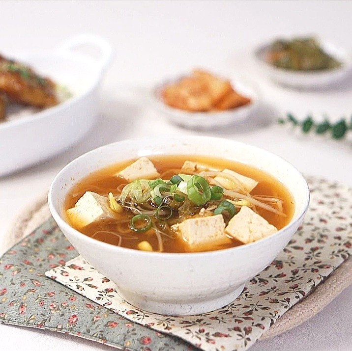 ¡Tu sopa picante y refrescante de Kimchi y Brotes de Soja está lista! Disfruta de este delicioso y reconfortante plato con un tazón de arroz caliente. 🙂
