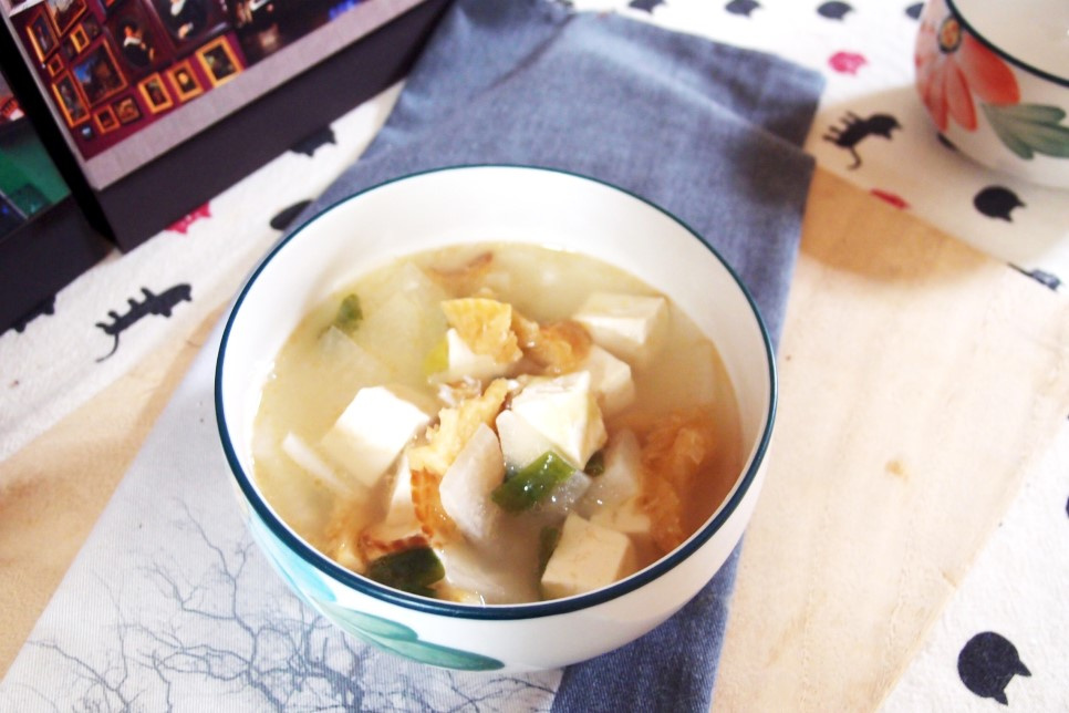 Cuando el caldo esté blanco lechoso y el rábano tierno, agrega el ajo picado y la cebolla de verdeo picada. Lleva la sopa a un hervor suave nuevamente, luego agrega el tofu cortado en cubitos. Deja que hierva a fuego lento por un momento más. Sazona la sopa con salsa de pescado (o salsa de soja para sopa/camarones salados) al gusto. Revuelve suavemente para combinar sin romper el tofu.