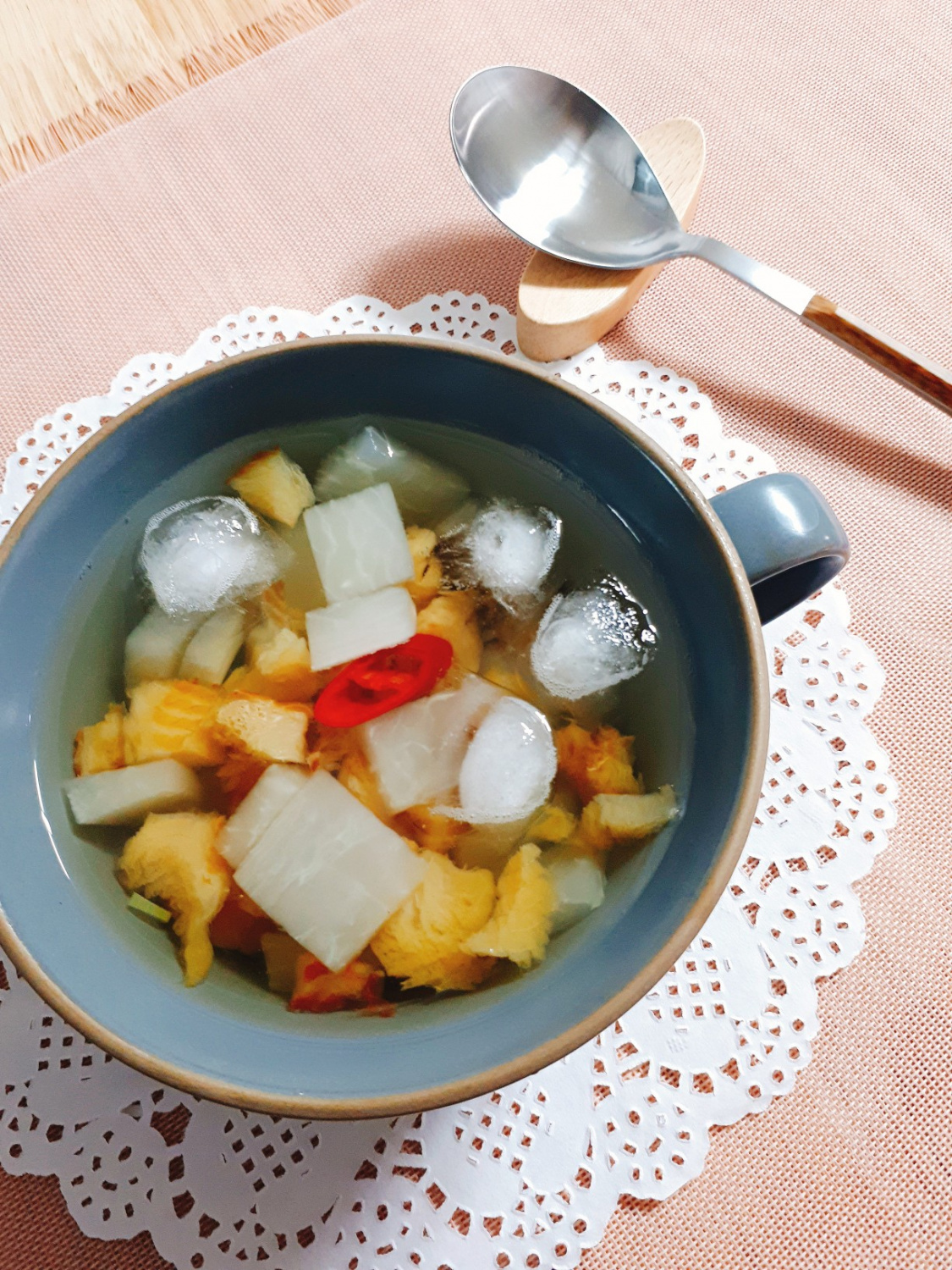Sopa Refrescante y Clara de Abadejo Seco