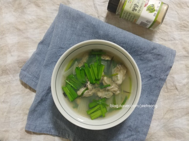 Sirva la sopa inmediatamente en cuencos. Disfrútela caliente con una guarnición de arroz para una comida sustanciosa. Es el plato perfecto para calentarlo en un día frío de invierno. ¡Saboree la deliciosa combinación de cebollino fragante y el sabor limpio y refrescante de las ostras!