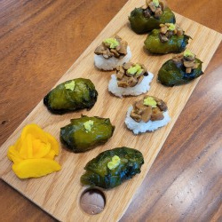 Este plato está diseñado para reponer los nutrientes esenciales que a menudo faltan en las dietas vegetarianas, al mismo tiempo que captura los deliciosos sabores del sushi japonés. Cargado con calcio y fibra de las algas marinas, y potasio de los champiñones shiitake, esta es una experiencia de sushi verdaderamente saludable.