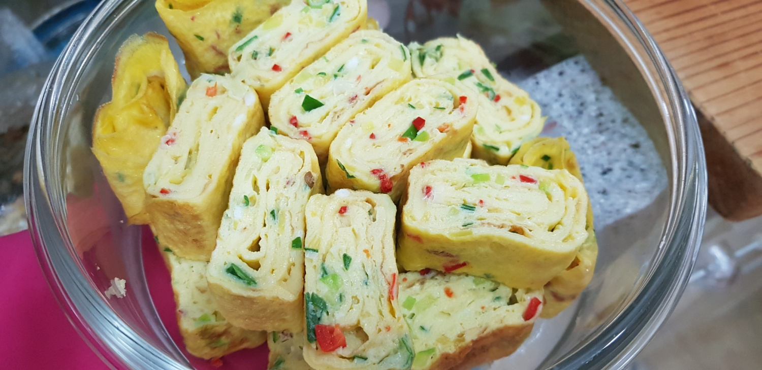 Una vez ligeramente enfriado, corta el tamagoyaki en diagonal en trozos atractivos. ¡A los niños les encantará! Para un toque extra de sabor, sírvelo con ketchup, mostaza o mayonesa.