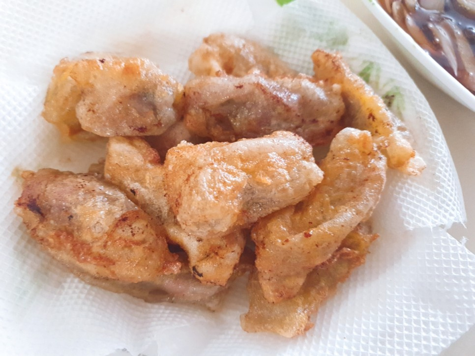 Una vez frito a la perfección, retire el tangsuyuk y escúrralo sobre papel de cocina. El papel de arroz crea un rebozado maravillosamente fino, crujiente y masticable que es realmente único. ¡También es tentador picar algunos mientras salen de la freidora!