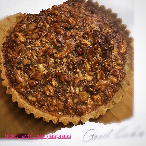 ¡Antes de hornear a ciegas la masa, no olvide untar el interior del molde para tarta con mantequilla derretida! Este paso crucial ayuda a asegurar que su tarta se desmolde limpiamente una vez horneada. (¡En la foto se nota la pena de no haber engrasado completamente! Tales son las penurias de cocinar solo. ㅠㅡㅠ) Ahora, métala en el horno precalentado a 170-180°C durante 20 minutos, ¡y que se hornee hasta quedar deliciosa! ¡Por favor, sé deliciosa!