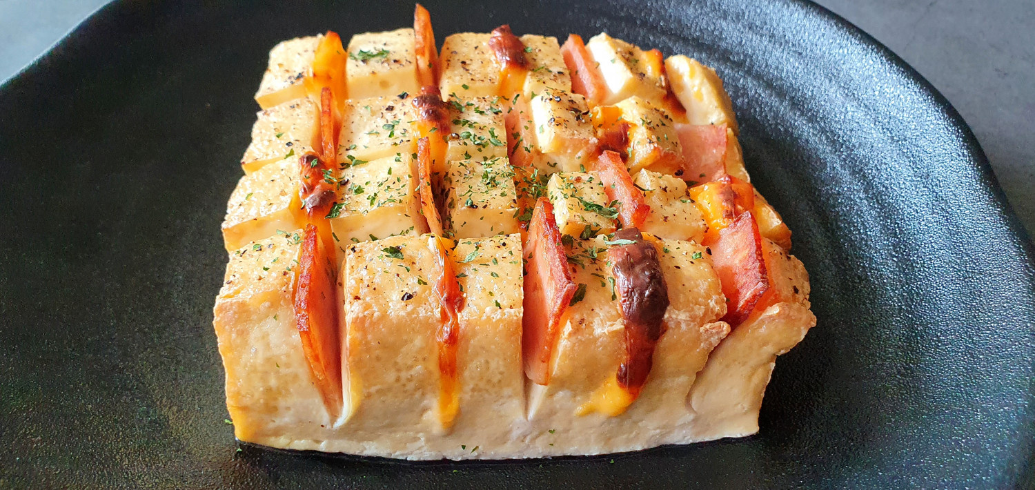 Delicioso Tofu, Jamón y Queso al Horno: Tofu Entero Asado a la Perfección con Jamón y Queso, Preparado Convenientemente en una Freidora de Aire