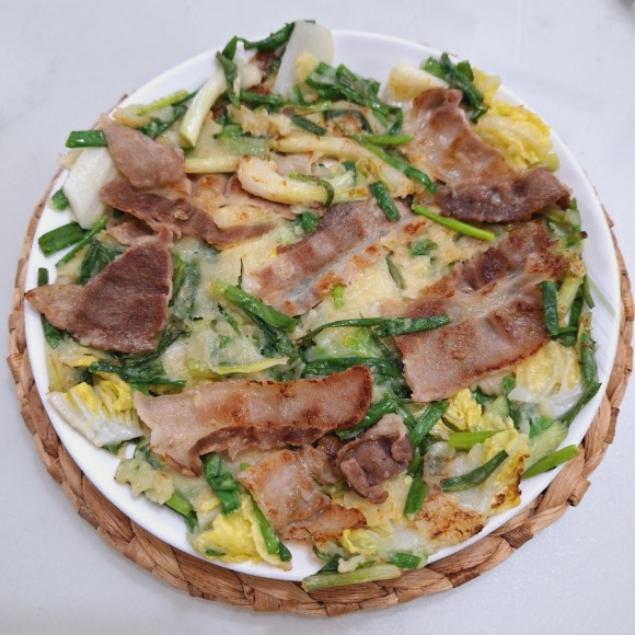 Tortita de Cebolleta China, Col China y Panceta Congelada: ¡Crujiente y Sabrosa!