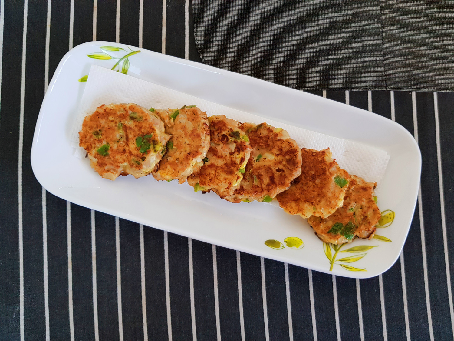 ¡Tus deliciosas tortitas de atún y patata están listas! Están maravillosamente doradas y tienen una fragancia increíble. La textura crujiente del pimiento verde combinada con las notas suaves y sabrosas de la patata hacen que estas tortitas sean increíblemente satisfactorias. ¡Disfrútalas mientras estén calientes!