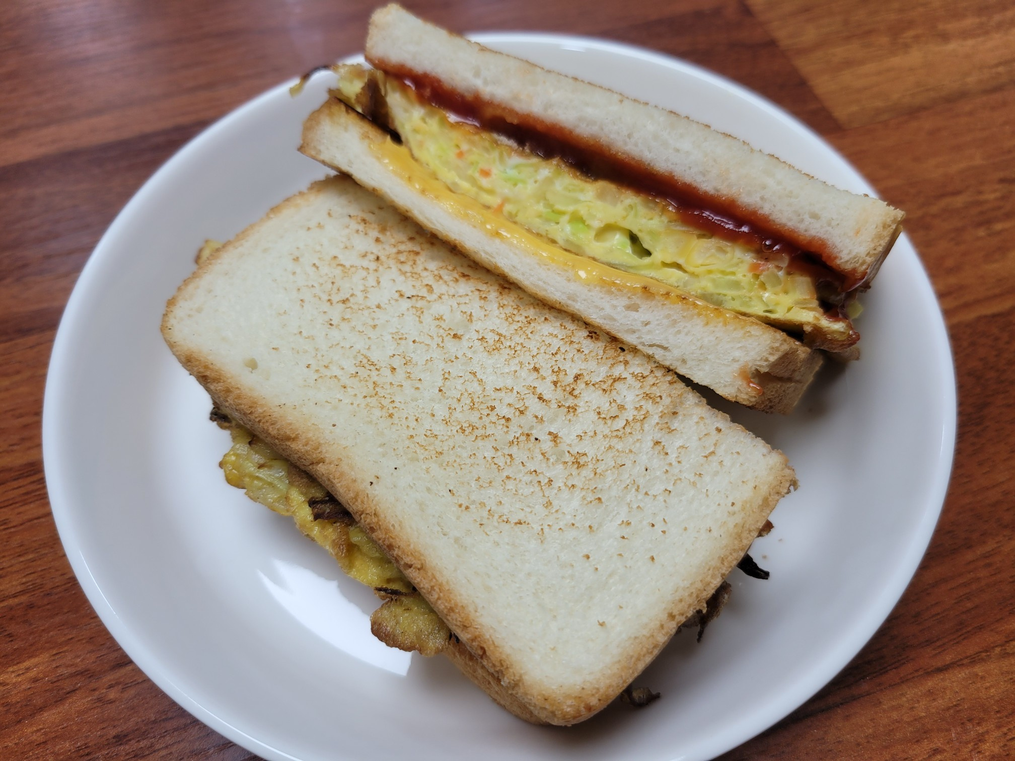 En la misma sartén, o en una limpia, añada un poco más de mantequilla o aceite. Vierta la mezcla de verduras y huevo en la sartén, dándole forma de una tortita rectangular gruesa que coincida con el tamaño de su pan. Es crucial cocinar esto a fuego lento hasta que el interior esté completamente cocido. Déle la vuelta con cuidado a la tortita para cocinar el otro lado; sea delicado para evitar que se rompa.
