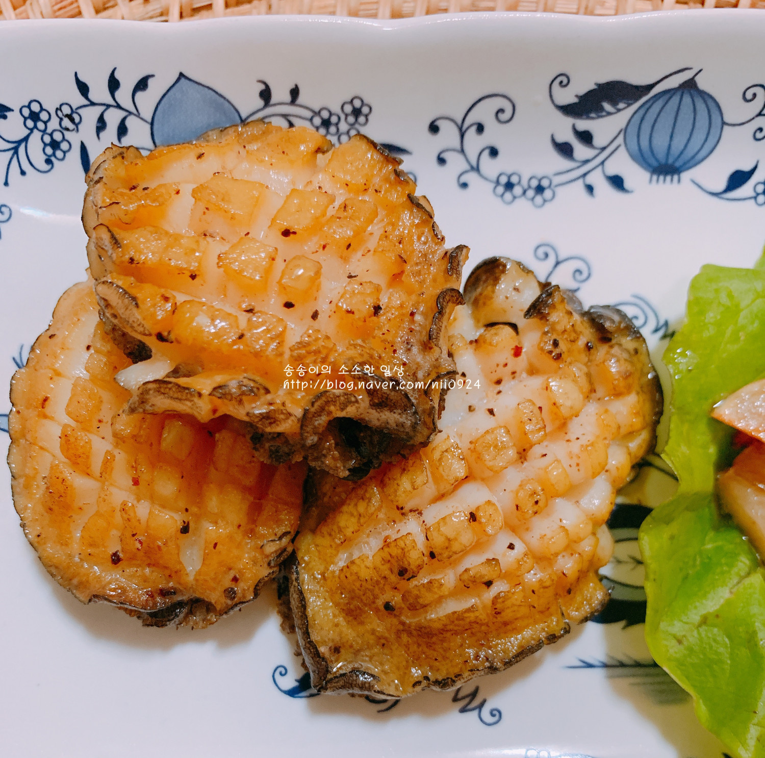 Abalon yang dimasak dengan minyak perilla jauh lebih gurih, ringan, dan lezat daripada yang dimasak dengan mentega. Saat dinikmati dengan irisan bawang putih tumis minyak perilla, rasa kaya akan menyeimbangkan kegemukan secara sempurna dan memenuhi mulut Anda dengan kebahagiaan. Anda harus mencoba membuatnya!
