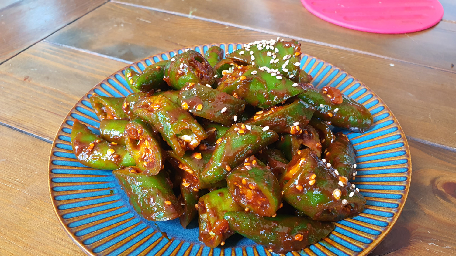 Acar cabai renyah yang tidak pedas ini tidak hanya menjadi banchan (lauk) yang sangat baik, tetapi juga pendamping yang sempurna untuk hidangan daging yang kaya, membantu menyeimbangkan rasa gurihnya. Nikmati hidangan berlimpah dengan resep mudah dibuat ini yang dapat dinikmati dalam waktu lama!