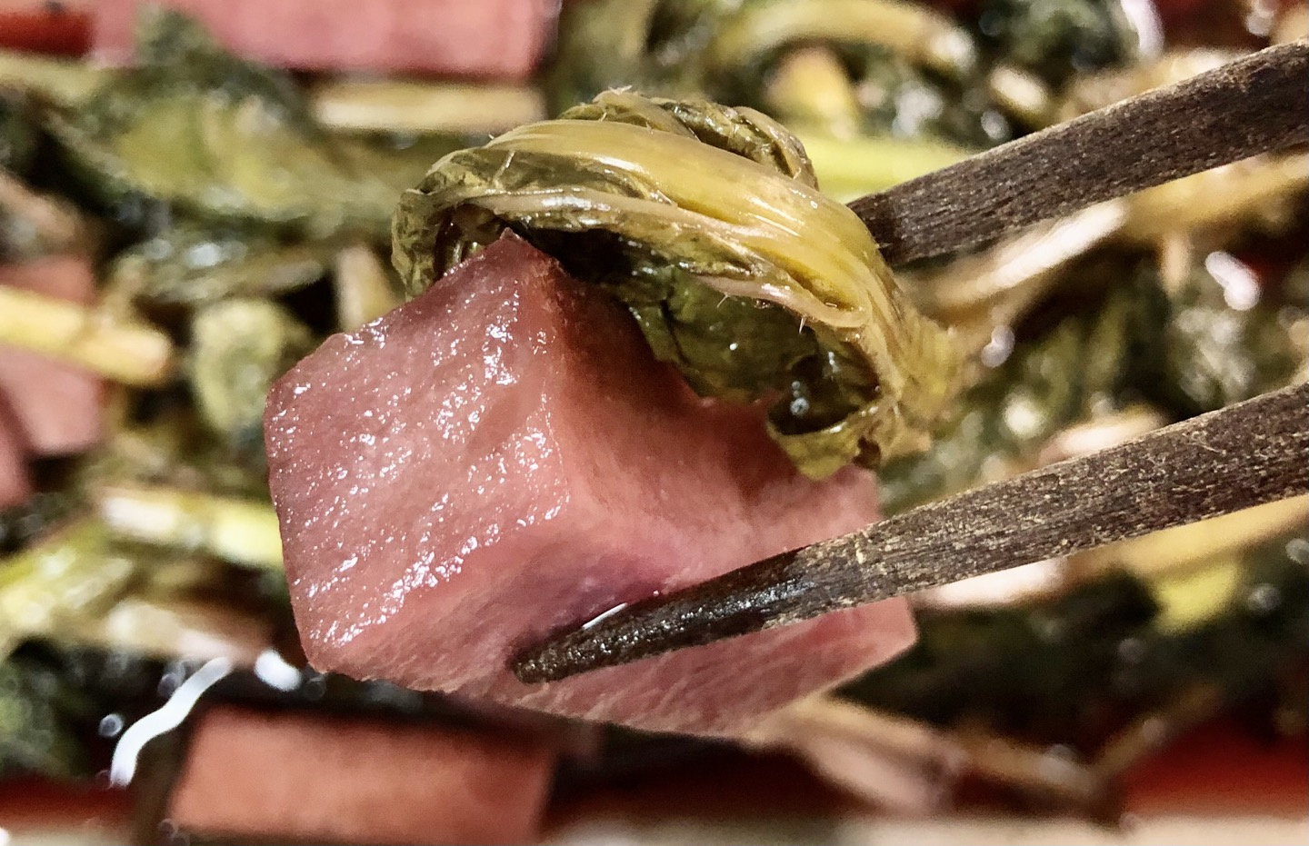 Bahan Utama- Daun Mustard Merah Segar (Hong Gat) 850g (Pastikan batang dan daunnya cerah dan segar)