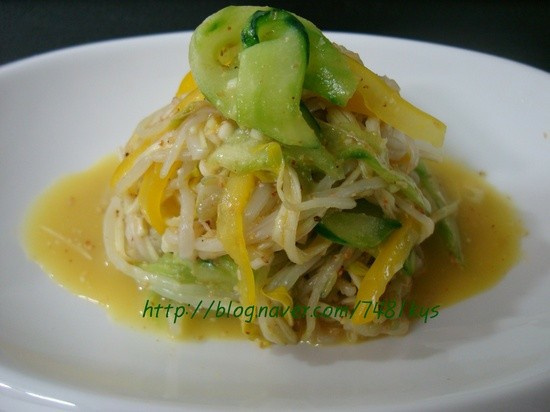 Campurkan tauge yang sudah direbus, timun yang sudah diperas, paprika iris, dan jamur enoki rebus dalam mangkuk besar. Tuangkan saus mustard yang sudah disiapkan di atas bahan-bahan tersebut. Aduk perlahan dengan tangan Anda hingga semua bahan tercampur rata. Gerakan ‘ 조물조물’ (jo-mul jo-mul) ini memastikan saus melapisi semua bahan secara merata, menyelesaikan acar tauge Anda yang lezat!
