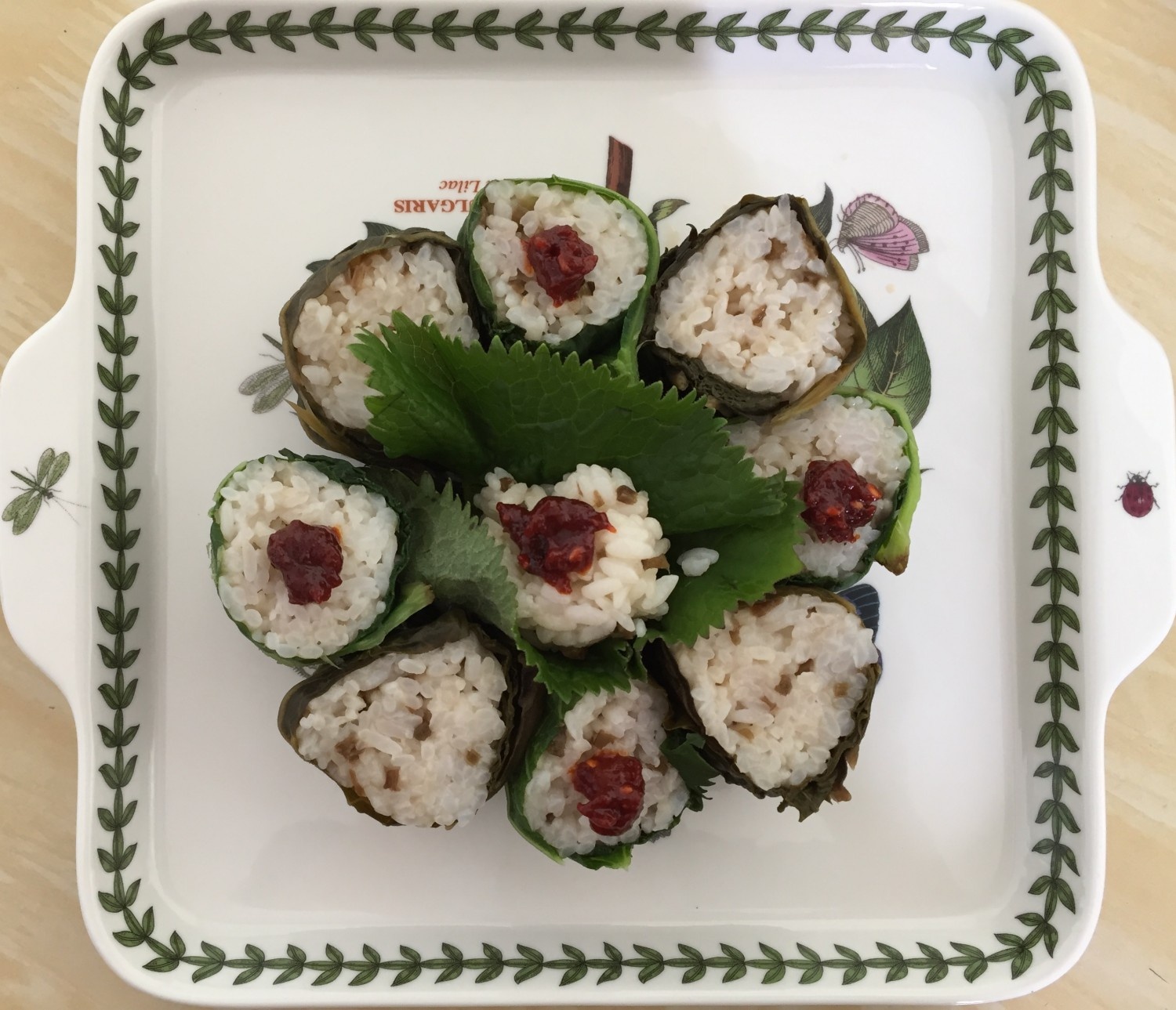 Sekarang, saatnya membentuk nasi. Karena daun Gomchwi cukup besar, bentuk nasi menjadi bola-bola nasi yang cukup besar, hampir seperti onigiri besar. Sesuaikan ukuran bola nasi agar pas dengan ukuran daun Gomchwi Anda untuk tampilan yang indah.