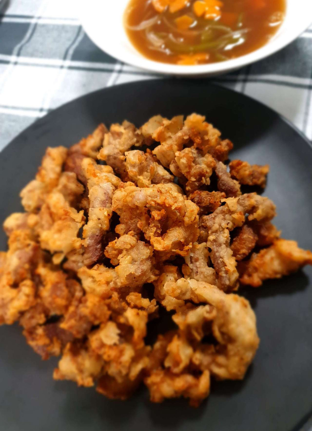 Setelah penggorengan kedua selesai, pindahkan Tangsooyuk yang renyah ke piring yang dilapisi tisu dapur untuk menyerap kelebihan minyak. Sambil daging babi diistirahatkan, mari siapkan sausnya yang menggugah selera.