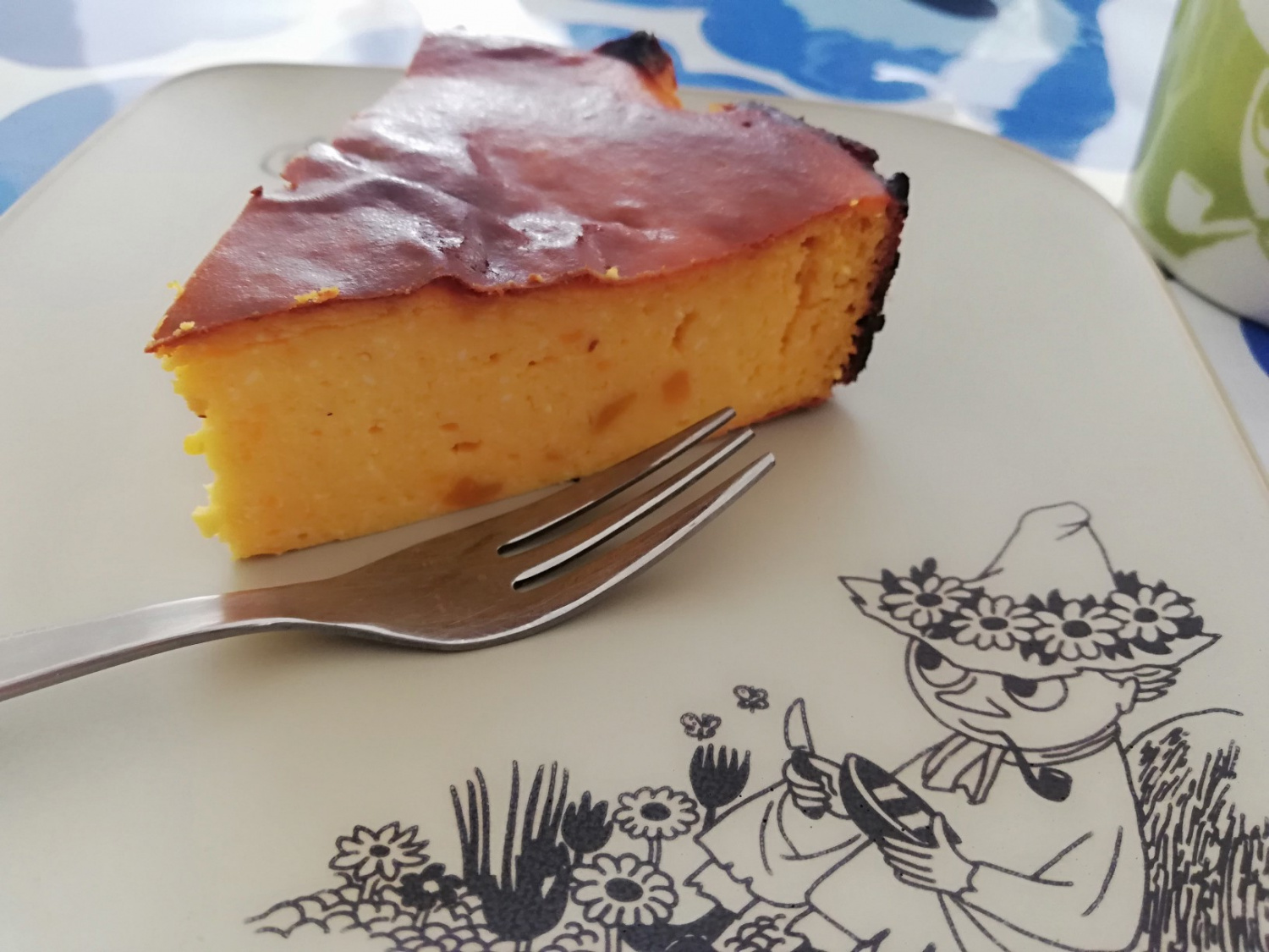 Foto ini menunjukkan versi ubi jalar yang dipanggang selama 35 menit. Menggunakan loyang bulat tampaknya menghasilkan permukaan atas yang lebih lezat dan ‘terbakar’ secara merata, yang merupakan ciri khas Basque cheesecake! Bagian atas yang sedikit gosong menambahkan kedalaman rasa yang luar biasa.