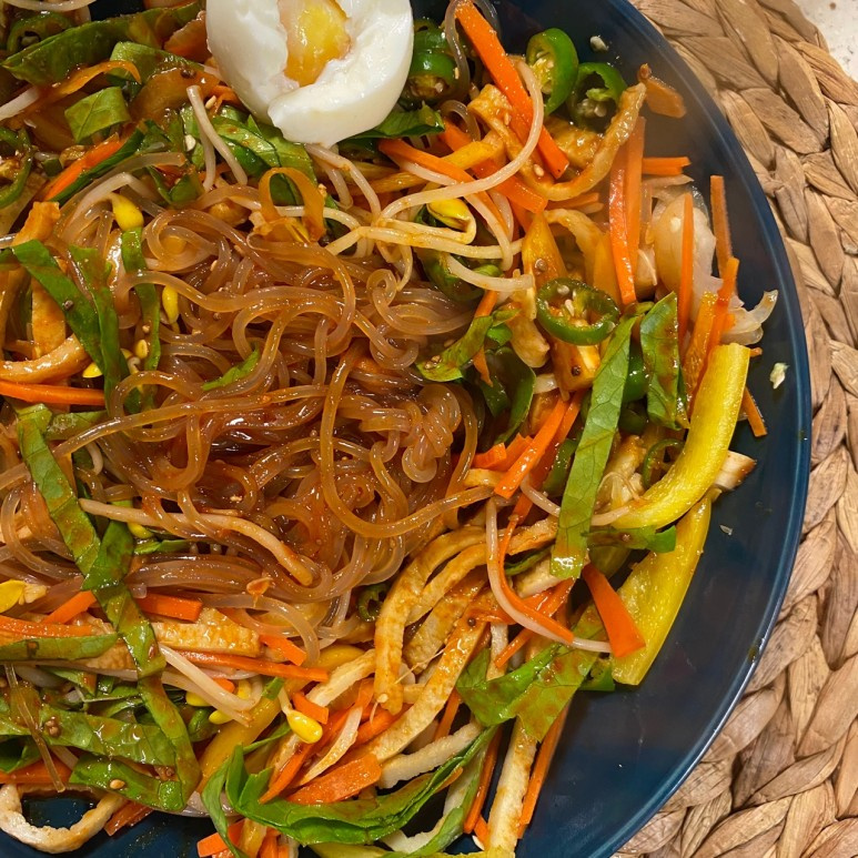 Dangmyeon yang kenyal, sayuran renyah, dan saus yang fantastis menciptakan harmoni yang sempurna. Bibim Dangmyeon yang tak tertahankan ini sangat enak sehingga Anda akan menghabiskan seluruh mangkuk! Cobalah di rumah!