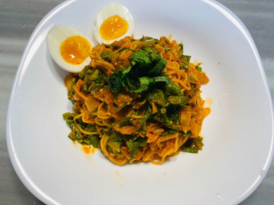 Semua komponen Anda kini siap. Anda memiliki mie yang kenyal sempurna, saus buatan sendiri yang lezat, serta sayuran segar dan kimchi. Semuanya siap untuk Anda membuat Bibim Guksu yang luar biasa!