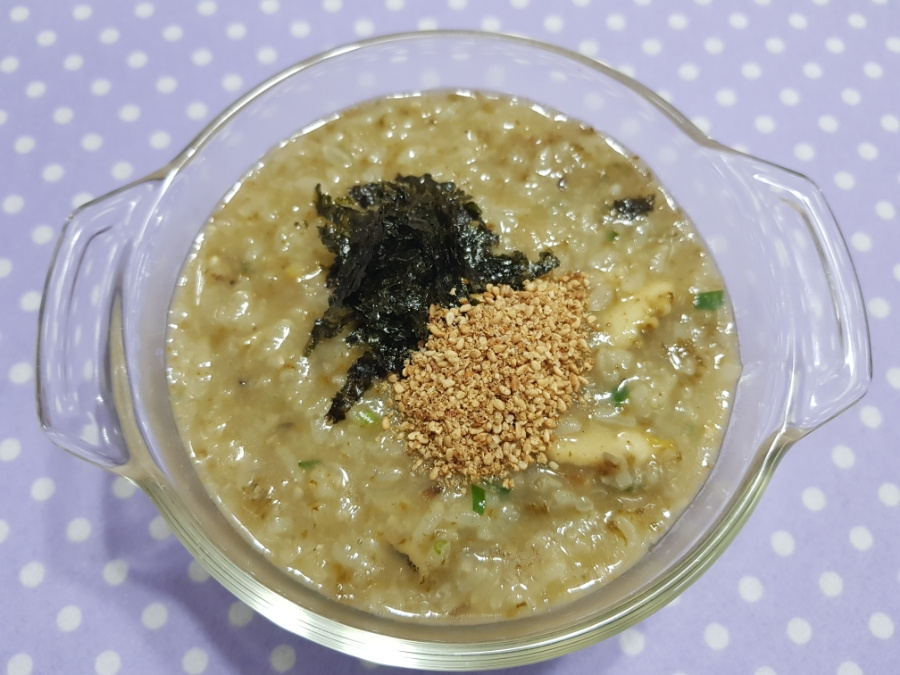 Sajikan bubur abalon yang bergizi dalam mangkuk. Taburi dengan biji wijen sangrai untuk rasa gurih dan nori cincang untuk aroma dan rasa tambahan. Nikmati segera selagi hangat!