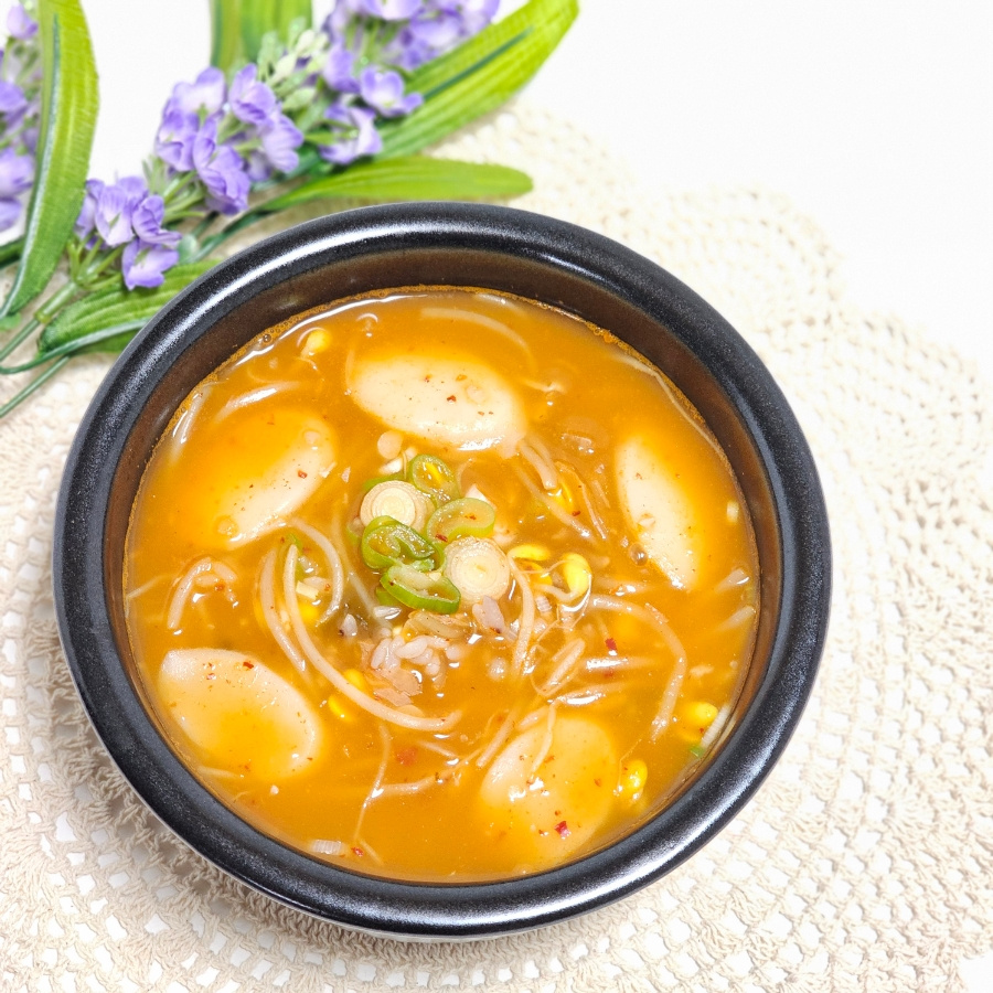 Setelah menambahkan nasi dan tteok, didihkan kembali campuran tersebut. Cicipi dan bumbui dengan 1 sdm bawang putih cincang dan 1 sdm kecap ikan atau kecap asin. Karena kimchi sudah dibumbui dan tteokguk tteok mungkin memiliki sedikit rasa asin, sebaiknya lakukan tes rasa terakhir setelah menambahkan kue beras. Sesuaikan dengan garam jika perlu.