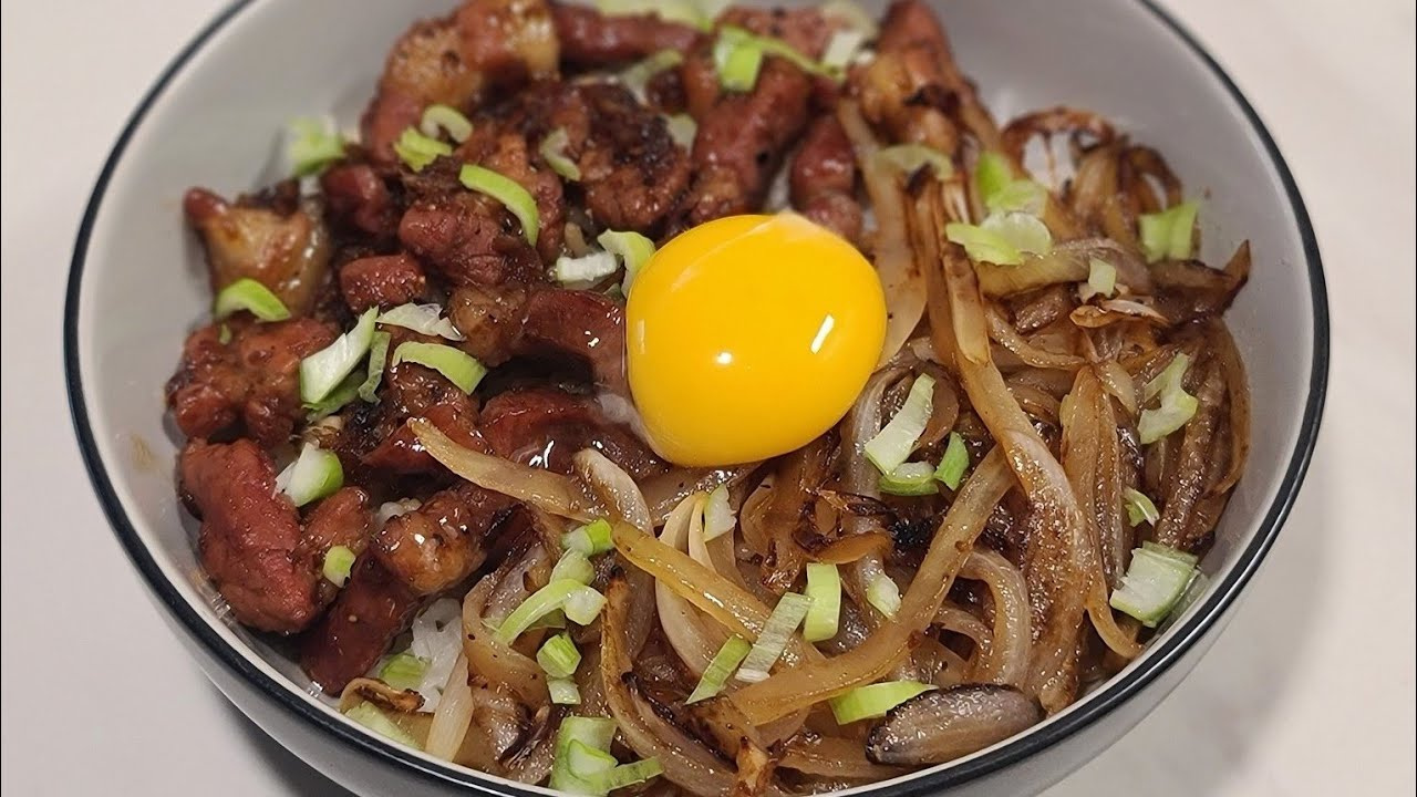 Saat waktu terbatas tetapi mendambakan makanan lezat, berikut adalah resep ‘Buta-don’ yang bisa Anda buat dengan cepat dan minim cucian! Menampilkan daging babi beraroma yang direbus dengan jahe, bawang bombay empuk, dan kuning telur yang kaya, hidangan ini sama memanjakannya di mata seperti di lidah. Tingkatkan hidangan rumahan Anda dengan mangkuk nasi yang mengesankan namun mudah ini. (Untuk instruksi memasak terperinci, silakan lihat tautan video: https://youtu.be/Tk1AIxDWMZ0)