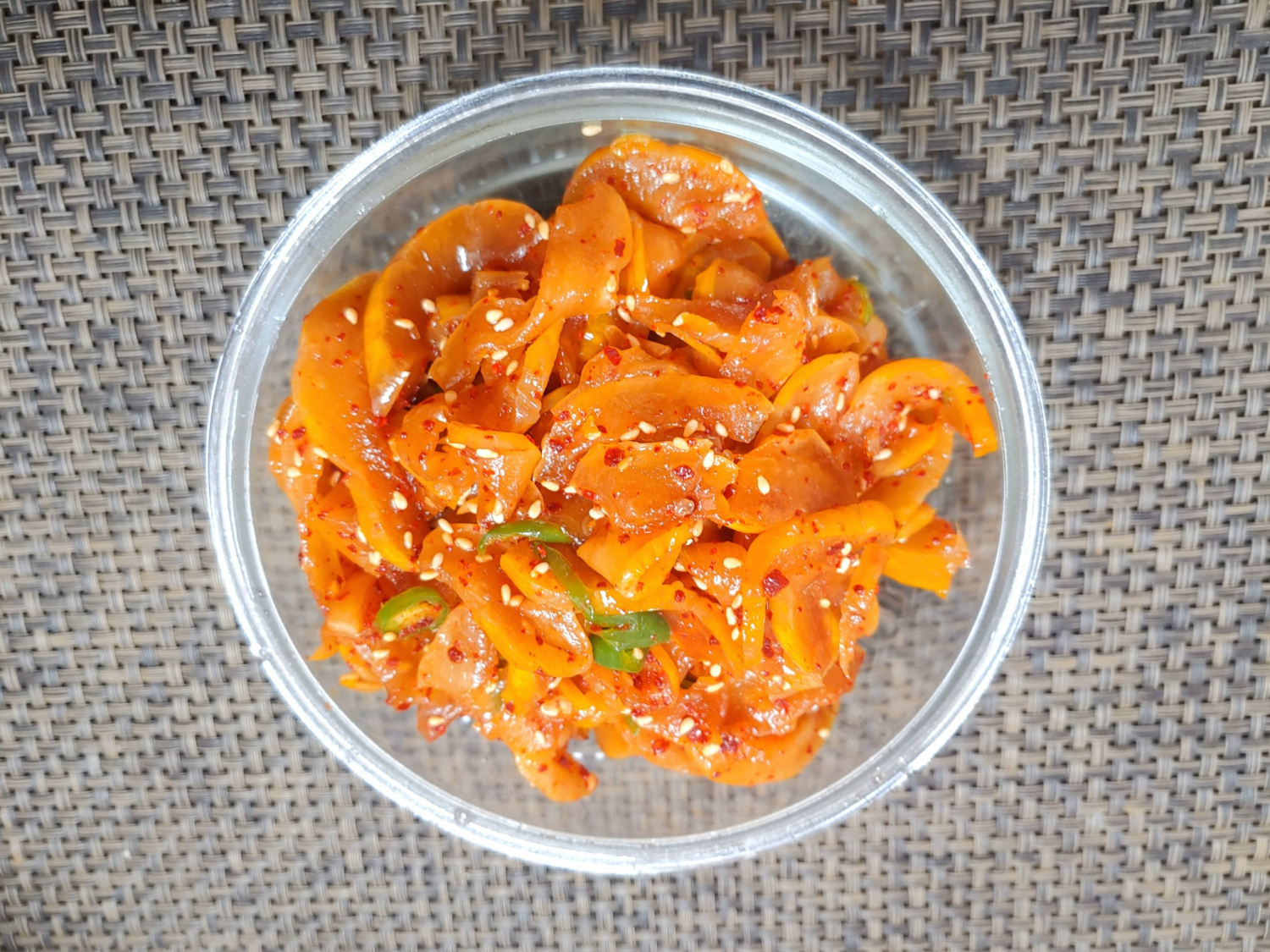 Chamoe jangajji berbumbu Anda kini siap! Ia menawarkan kerenyahan yang menyenangkan dan rasa manis-asam yang menciptakan profil rasa yang unik dan gurih. Ini adalah lauk yang fantastis untuk nasi atau bahkan sebagai camilan.