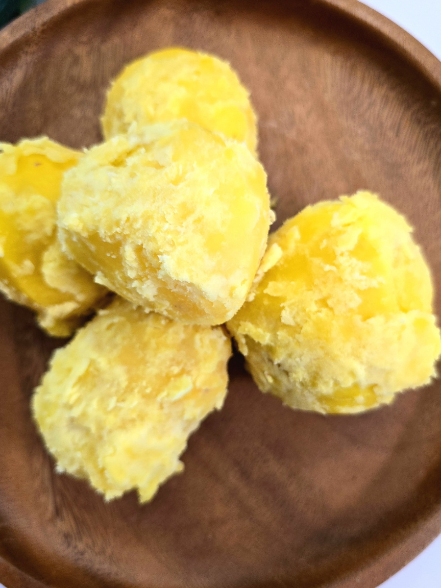 Manisnya berbeda dari kentang biasa! Kentang merah, dengan kulit merahnya yang mencolok dan bagian dalam kuning cerah, memiliki kandungan gula yang lebih tinggi daripada kentang biasa, menawarkan rasa yang lebih kaya. Jika Anda menyukai tekstur yang sedikit kering, Anda pasti akan menyukainya. Dengan kelembapan yang lebih sedikit dan rasa yang lembut, kentang ini mengingatkan pada ubi jalar. Bagi Anda yang menyukai tekstur empuk, ‘po-sul po-sul’, kami sangat merekomendasikan untuk mencoba kentang merah!