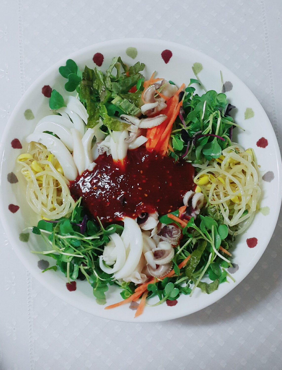 Masakan Musiman) Cumi Sotong dan Tauge Bibimbap