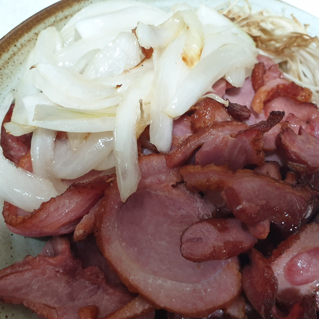Dengan jamur enoki yang sudah diangkat, lanjutkan memasak bawang bombay dan daging bebek asap di dalam air fryer. Setelah dibalik, masak selama 5 menit terakhir untuk memastikan daging bebek berwarna kecoklatan yang cantik dan matang merata.