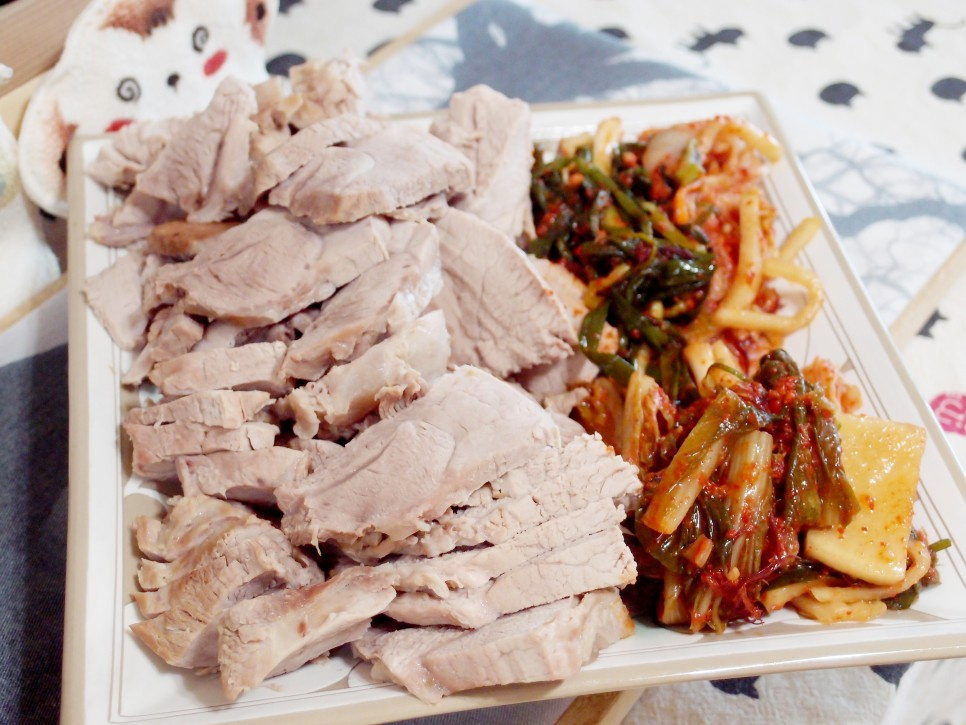 Di samping daging rebus, tambahkan kimchi daun bawang dan kimchi kol napa yang sudah matang. Menyajikan hidangan seperti ini membuatnya terlihat lebih menarik dan meningkatkan cita rasa keseluruhan. Daging sandung lamur sapi rebus super sederhana (suyuk/bossam) ini juga lezat jika dibungkus selada dengan bawang putih, cabai, dan saeujeot. Namun, untuk gigitan pertama, saya sangat menyarankan untuk mencobanya hanya dengan sedikit saeujeot untuk benar-benar menikmati rasa asli dagingnya. Rasanya sungguh nikmat!