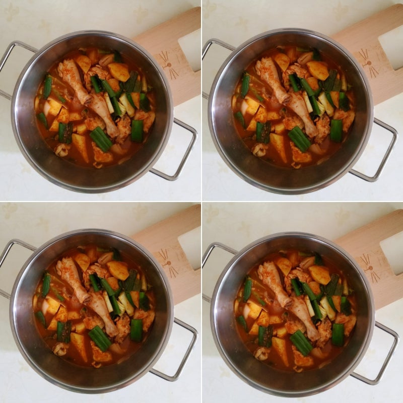 Ketika ayam dan ubi jalar hampir matang, masukkan potongan daun bawang besar secara merata dan masak lagi selama beberapa menit hingga semua bumbu meresap. Aroma daun bawang akan semakin memperkaya cita rasa hidangan ini. Tutup panci dan masak lagi selama sekitar 5 menit agar semua bahan menyatu dengan sempurna. Dakbokkeumtang Ubi Jalar Manis Anda pun siap dinikmati!