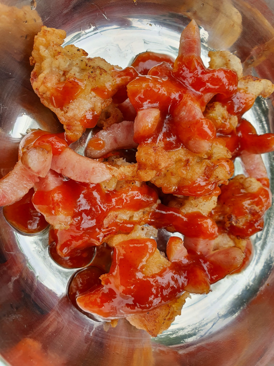 Jika Anda menambahkan sosis Viena, gorenglah dalam minyak yang sama setelah ayam matang. Ini adalah tambahan yang menyenangkan yang biasanya disukai anak-anak!