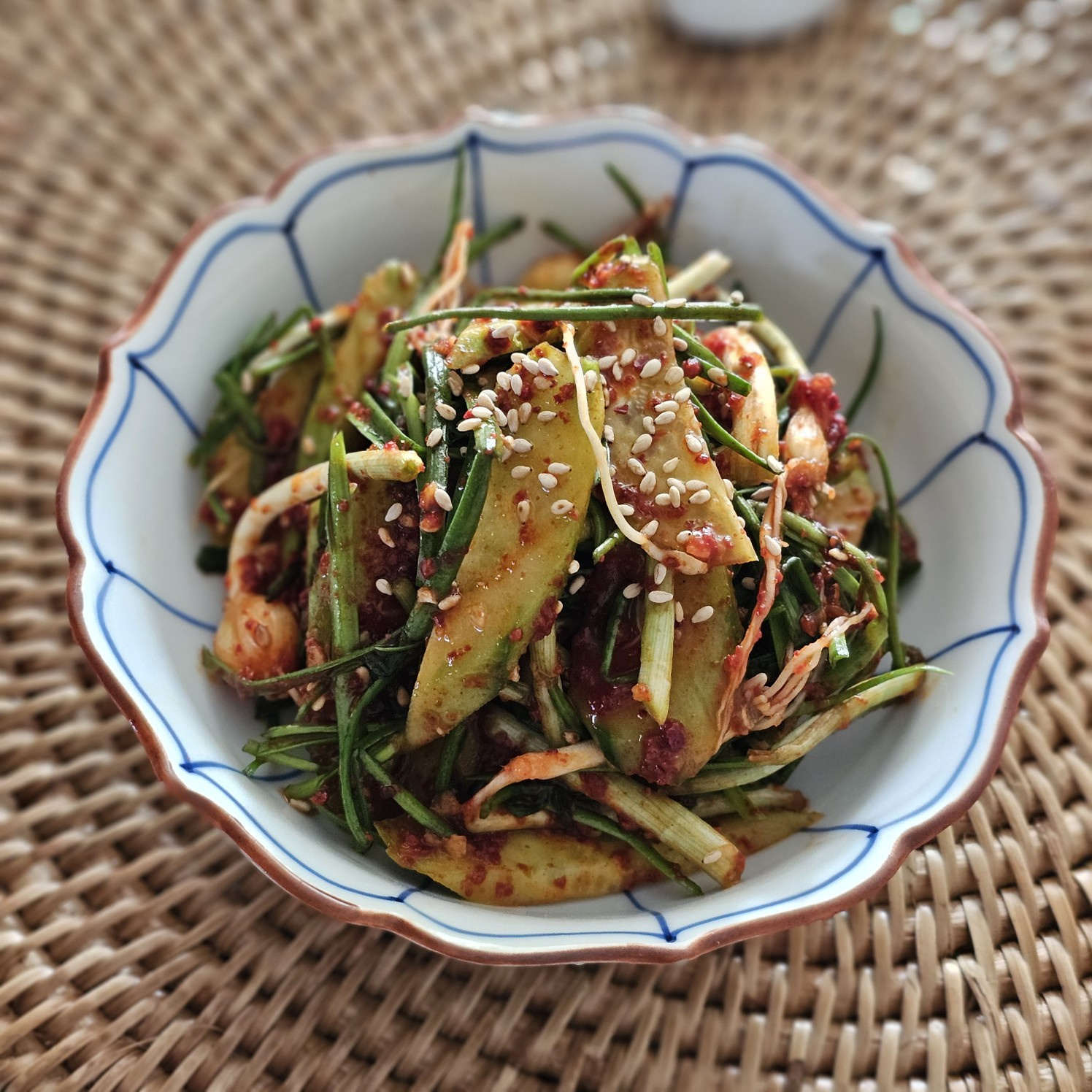 Delima Musim Semi: Salad Timun dan Daun Bawang Liar Korea yang Menyegarkan (Oi Dallae Muchim)