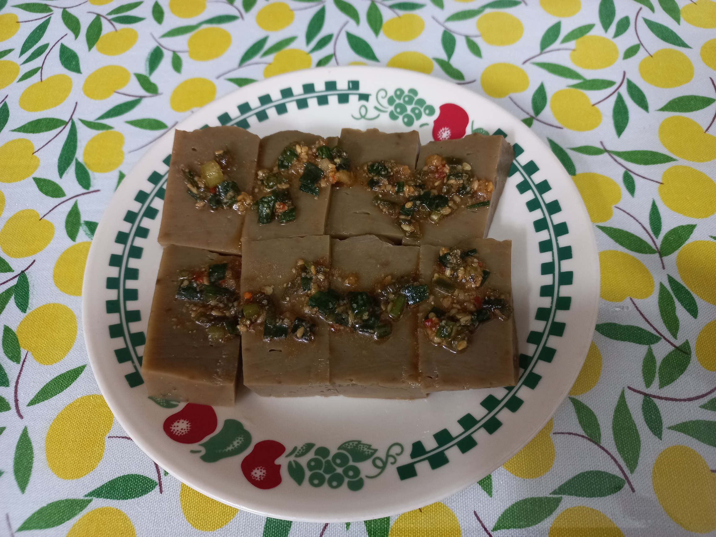 Siapkan saus bumbu yang lezat untuk disajikan dengan jeli biji ek buatan sendiri. Dalam mangkuk kecil, campurkan 1 sendok teh bawang putih cincang, 1 cabai cincang halus (seperti cabai rawit atau cabai cheongyang Korea), 3 sendok makan daun bawang cincang, 1 sendok makan kecap asin (atau kecap asin biasa), 2 sendok makan kecap asin biasa, 1 sendok makan kecap ikan, 1 sendok makan bubuk cabai, 1/2 sendok makan gula, 2 sendok makan wijen sangrai yang dihaluskan, dan 2 sendok makan minyak wijen. Siramkan saus beraroma ini dengan murah hati di atas jeli biji ek Anda yang sudah dingin dan nikmati suguhan lezat buatan sendiri ini! ♡