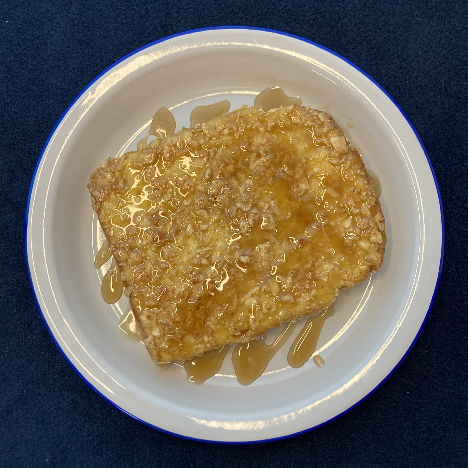 Sajikan French toast yang matang sempurna di atas piring enamel yang cantik. Tambahkan sirup maple atau madu sesuai selera untuk menikmati manisnya!