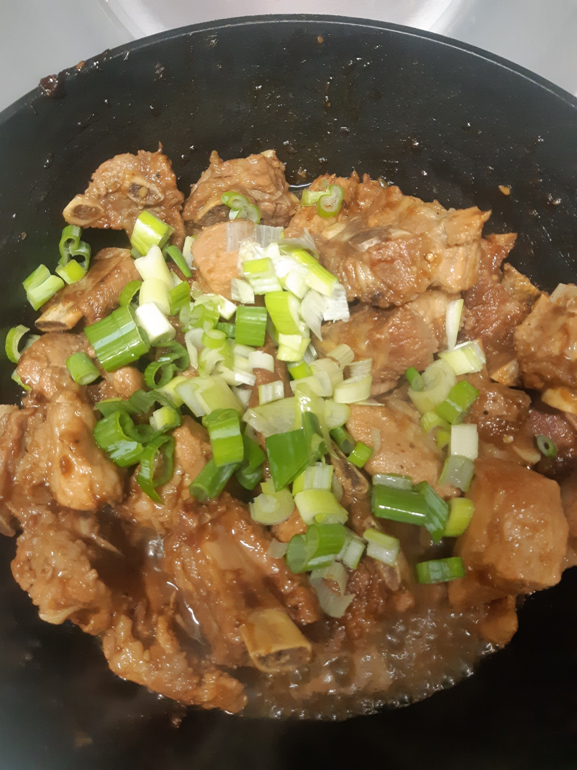 Setelah sekitar satu jam dimasak perlahan, iga akan sangat empuk, dan sausnya akan mengental menjadi konsistensi yang berkilau, menciptakan Galbijjim yang menggugah selera. Terakhir, hiasi dengan irisan daun bawang cincang untuk tampilan yang menarik dan rasa yang lebih kaya. Nikmati hidangan luar biasa ini dengan nasi hangat sebagai pendamping!