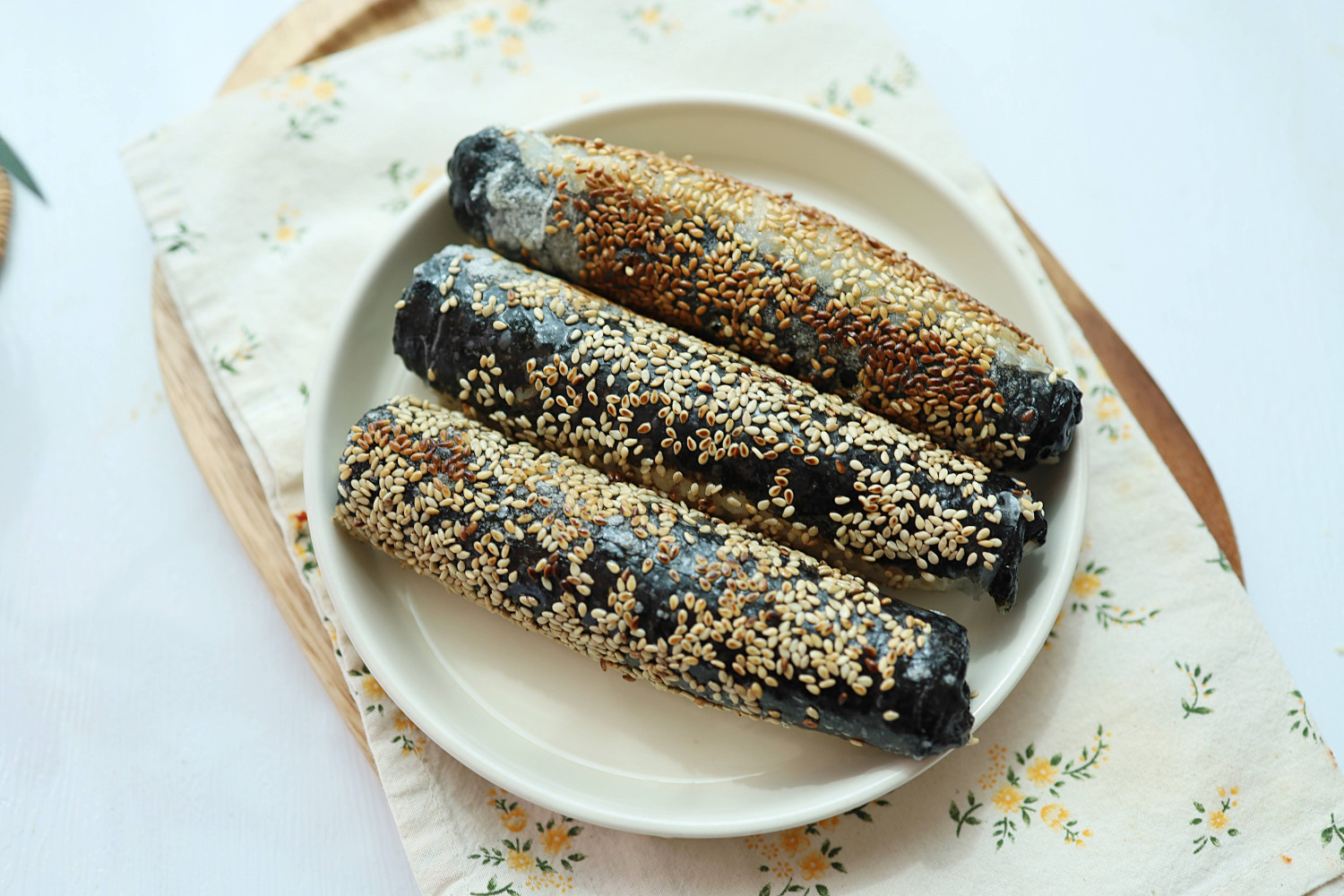 Mari tambahkan rasa gurih yang lezat! Olesi tipis bagian luar gimbap gulung dengan sedikit minyak wijen. Ini membantu biji wijen sangrai menempel lebih baik dan menambah lapisan aroma ekstra. Kemudian, gulingkan gimbap di piring berisi biji wijen sangrai, lapisi semua sisi secara merata dan banyak. Pastikan biji wijen menempel dengan baik di seluruh permukaan.