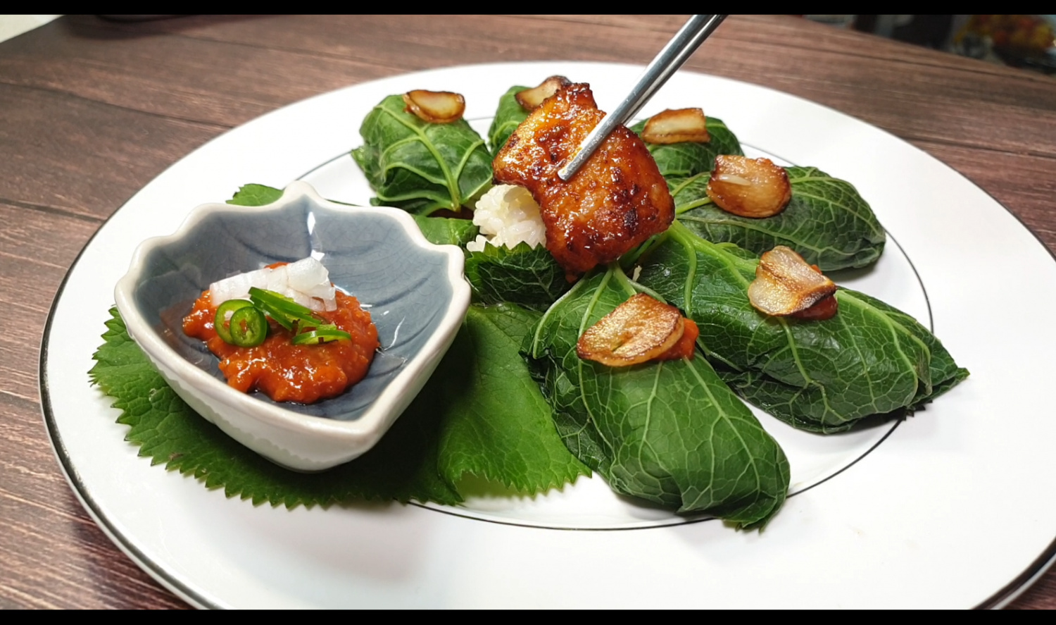 Gulungan Nasi Daun Beruang (Gomchwi) dengan Daging Babi Bumbu