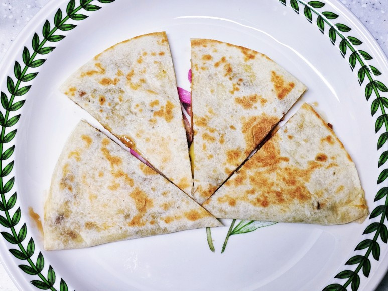 Lipat setengah bagian tortilla lainnya untuk membentuk setengah lingkaran. Tekan perlahan seluruh hotteok dengan spatula atau sutil. Ini membantu gula meleleh dan keju menyatu, membuat bagian luarnya sangat renyah.
