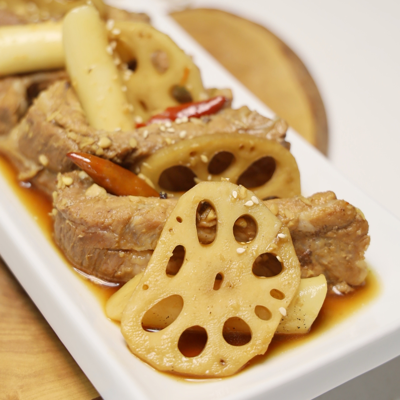 Iga Babi Rebus Saus Kecap dengan Akar Teratai