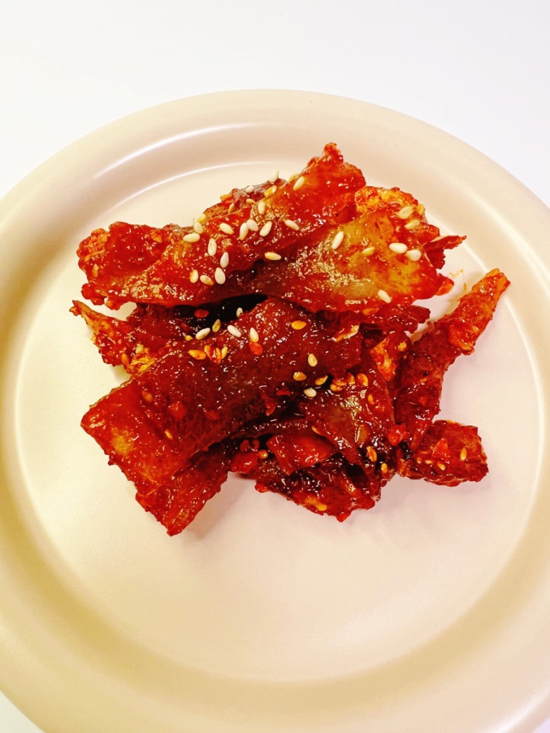Ikan teri sekarang terlapisi saus yang mengkilap dan lezat! Matikan api, teteskan sedikit minyak wijen, dan taburkan biji wijen sangrai untuk aroma dan rasa ekstra. Sajikan ikan teri bumbu pedas manis di piring. Meskipun lezat disajikan segera, teksturnya menjadi lebih kenyal dan beraroma jika dibiarkan selama sehari. Hidangan ikan teri kering pedas, manis, dan kenyal ini sangat cocok disantap dengan nasi dan juga merupakan camilan atau pendamping minuman yang fantastis!